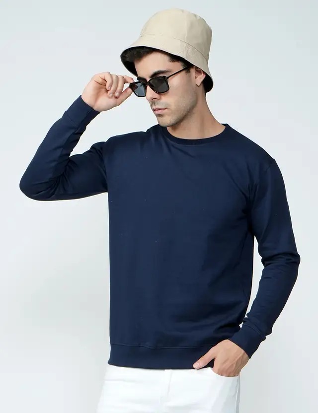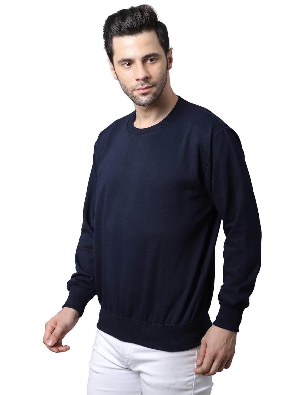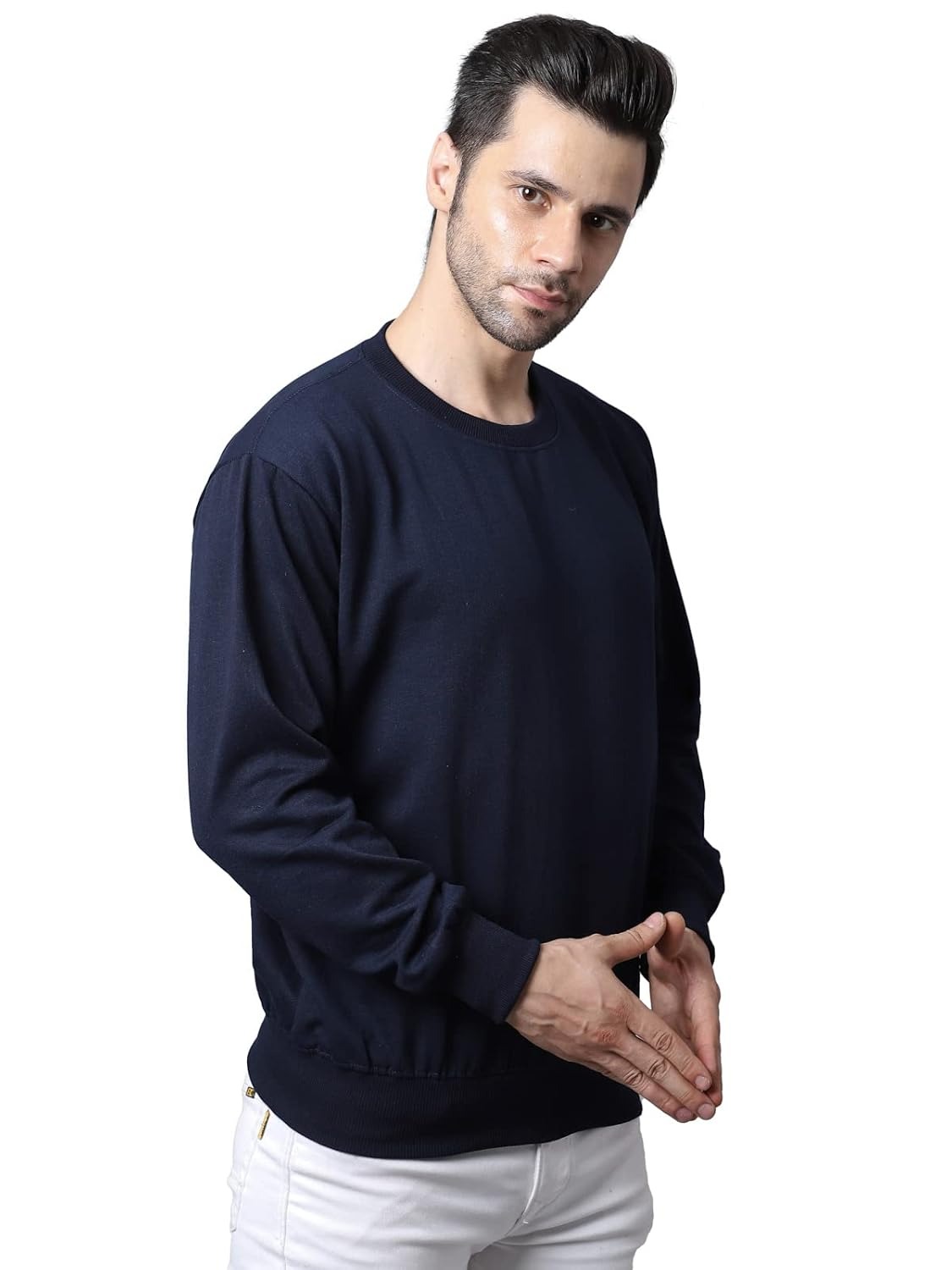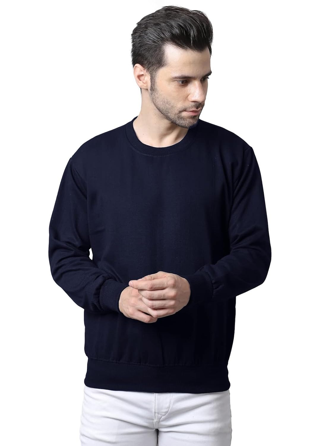 Cotton Fleece Regular Fit Sweatshirt Hooded Sweatshirt Full Sleeves Solid Jumper Hoodie for Men/Boys |SWSSRF00002_NAVY BLUE