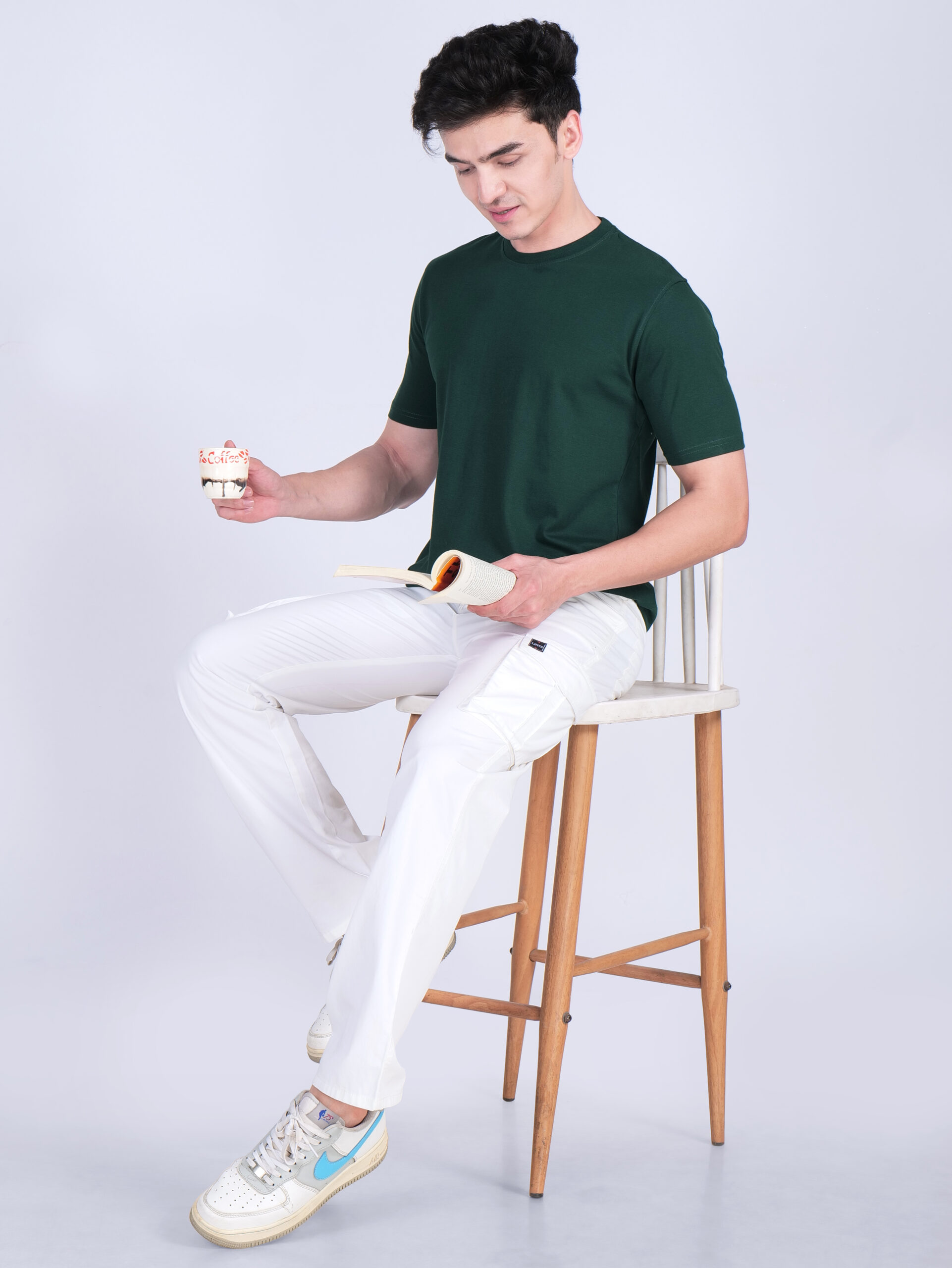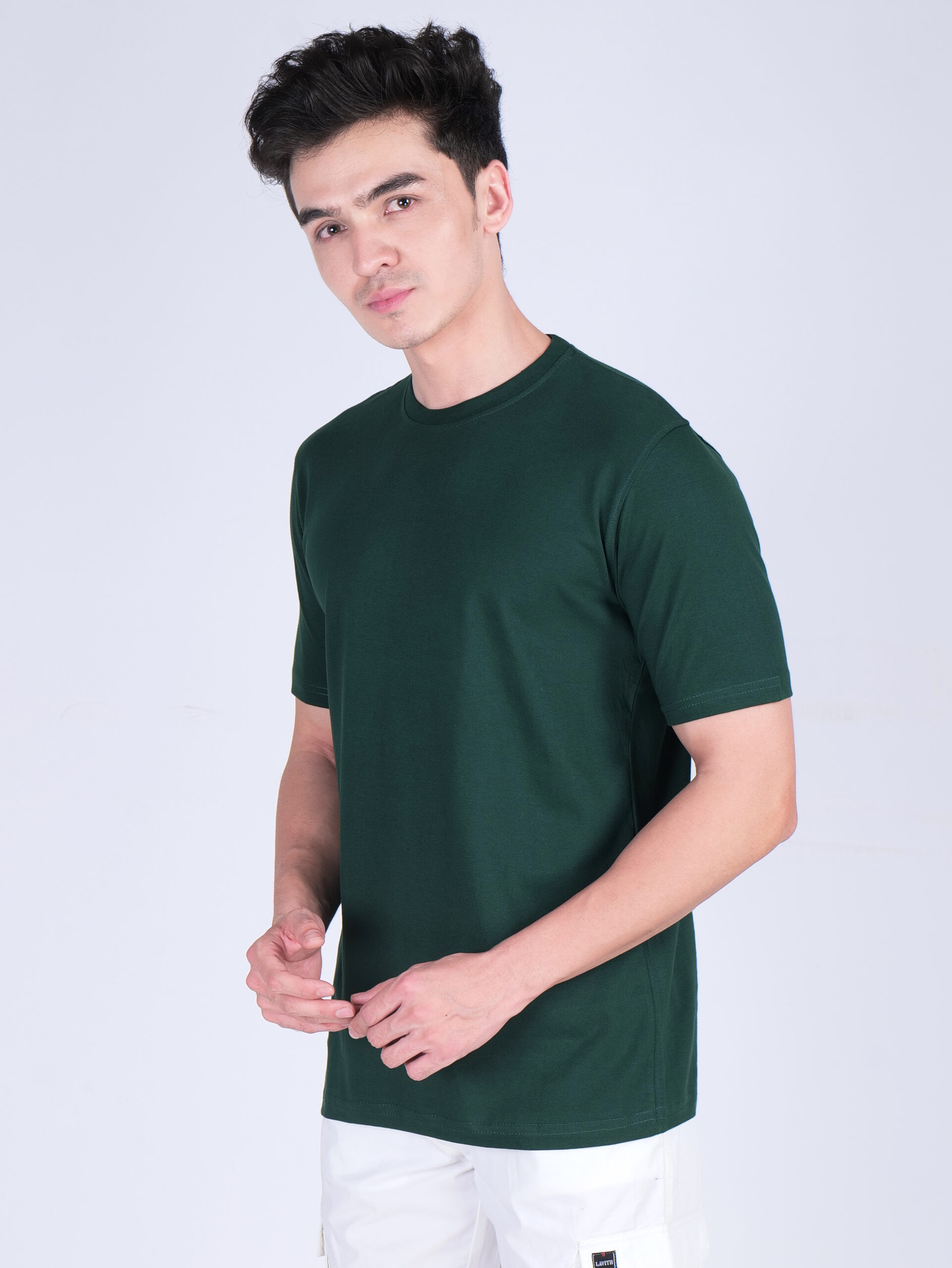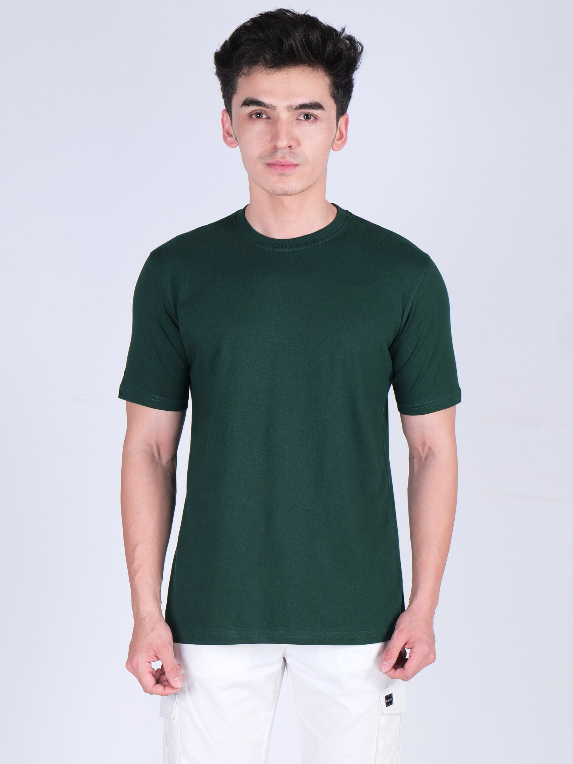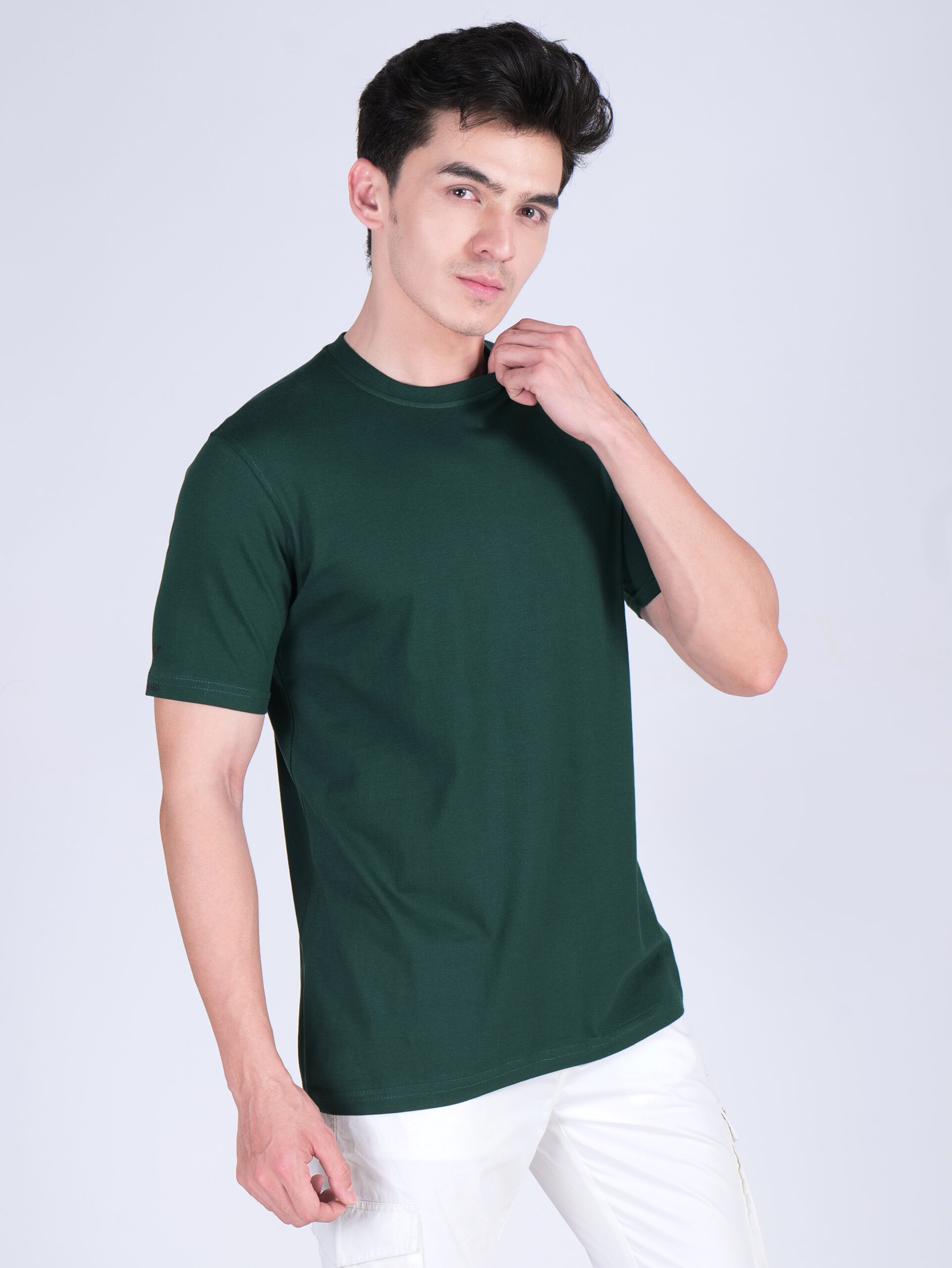 Men’s Solid Cotton T Shirt | Round Neck | Half Sleeve | Plain-Regular Fit | SWCTRF00014_BOTTEL GREEN