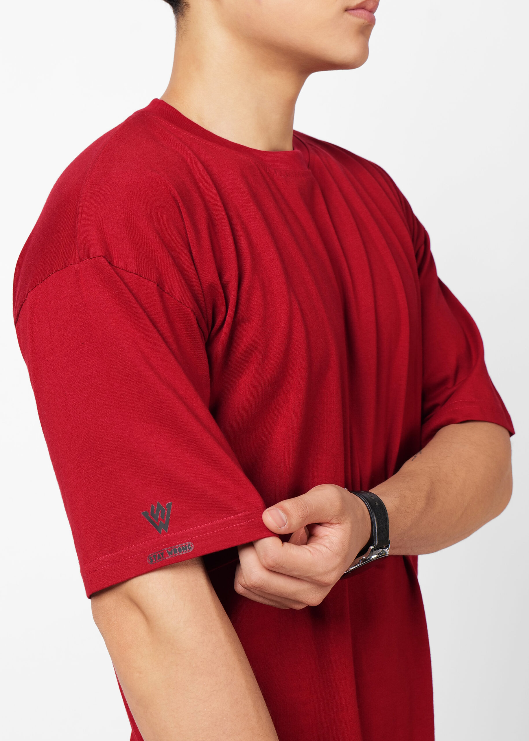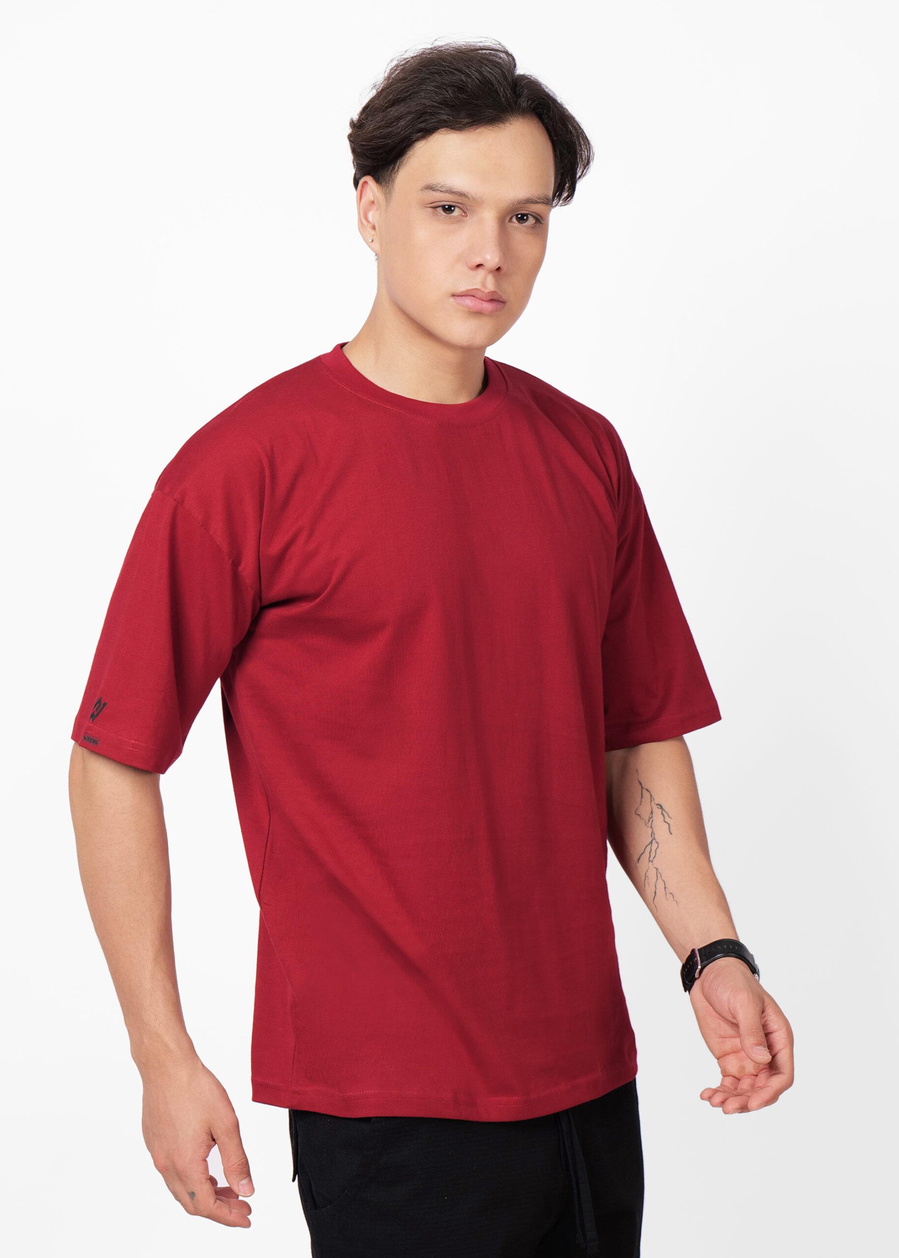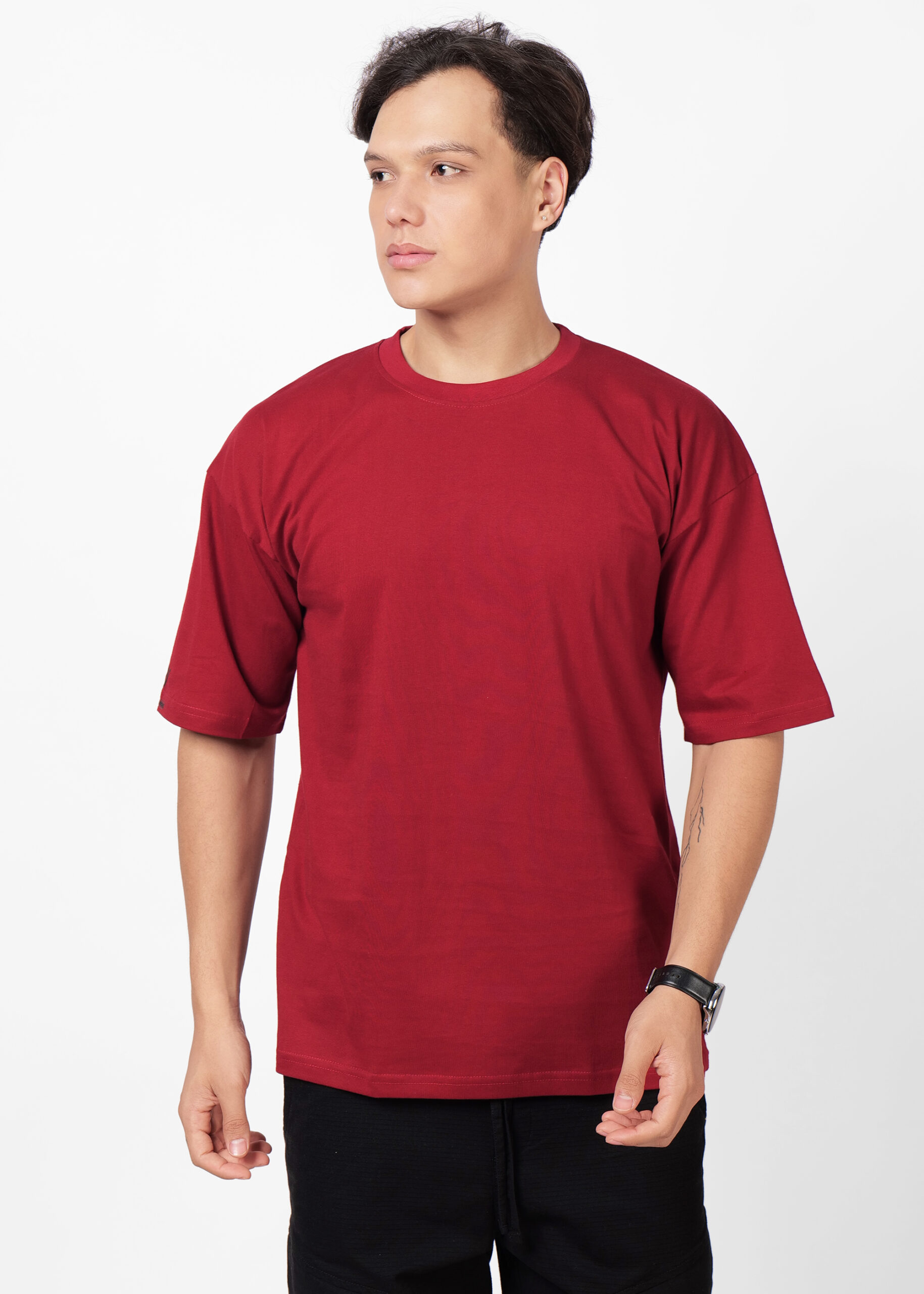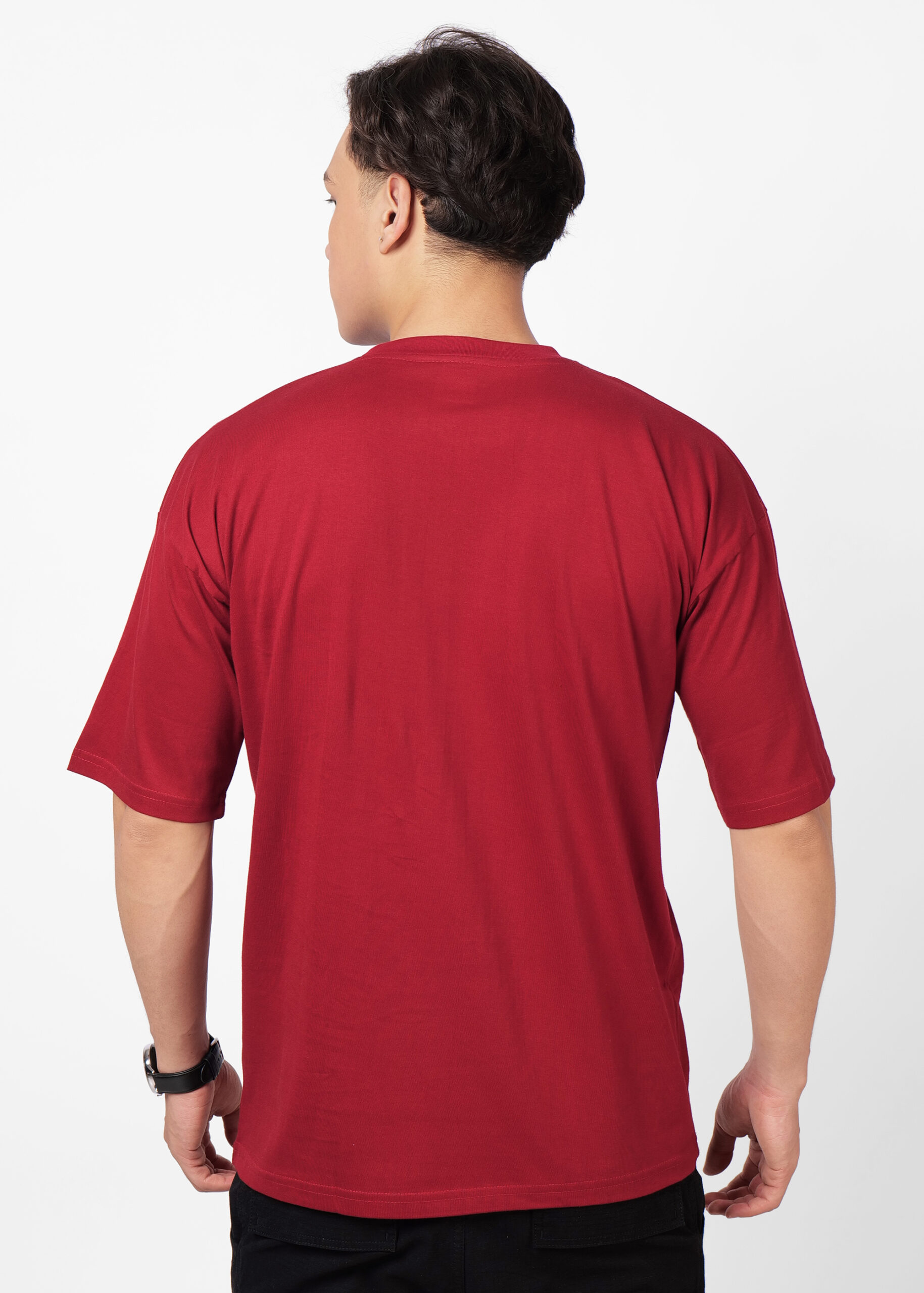 Men’s Oversized Solid Heavy Cotton T Shirt | Round Neck | Half Sleeve | Loose fit | SWCTOS00006_MAROON